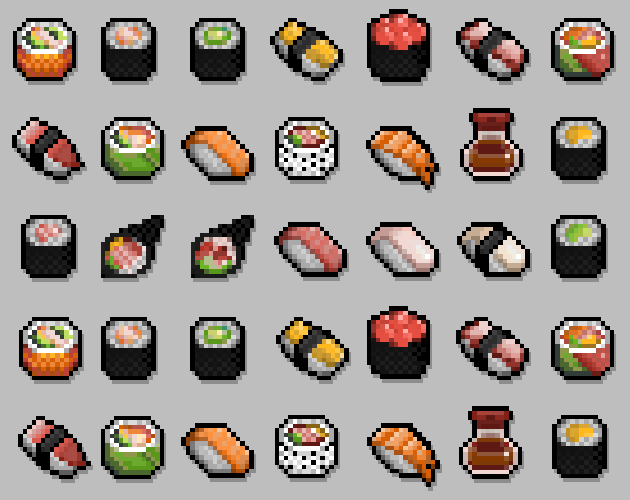 | Tags | 16x16, Cute, Food, japanese-food, japan-food, kawaii, No AI, Pixel Art, sushi, sushi-assets |